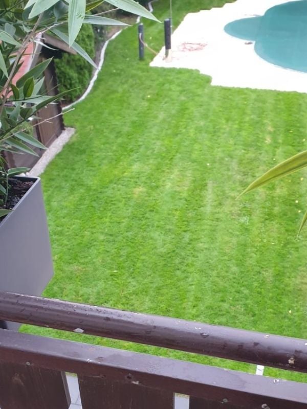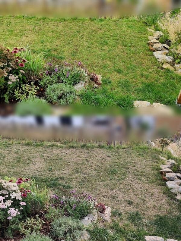 "Das erste Bild zeigt unseren Rasen am 30.08. und das zweite Bild ist am 15.9. aufgenommen. Echt unerwartet erholt sich der Rasen super gut. Ich bin super begeistert vom Rasenblitz. Super Produkt!!"